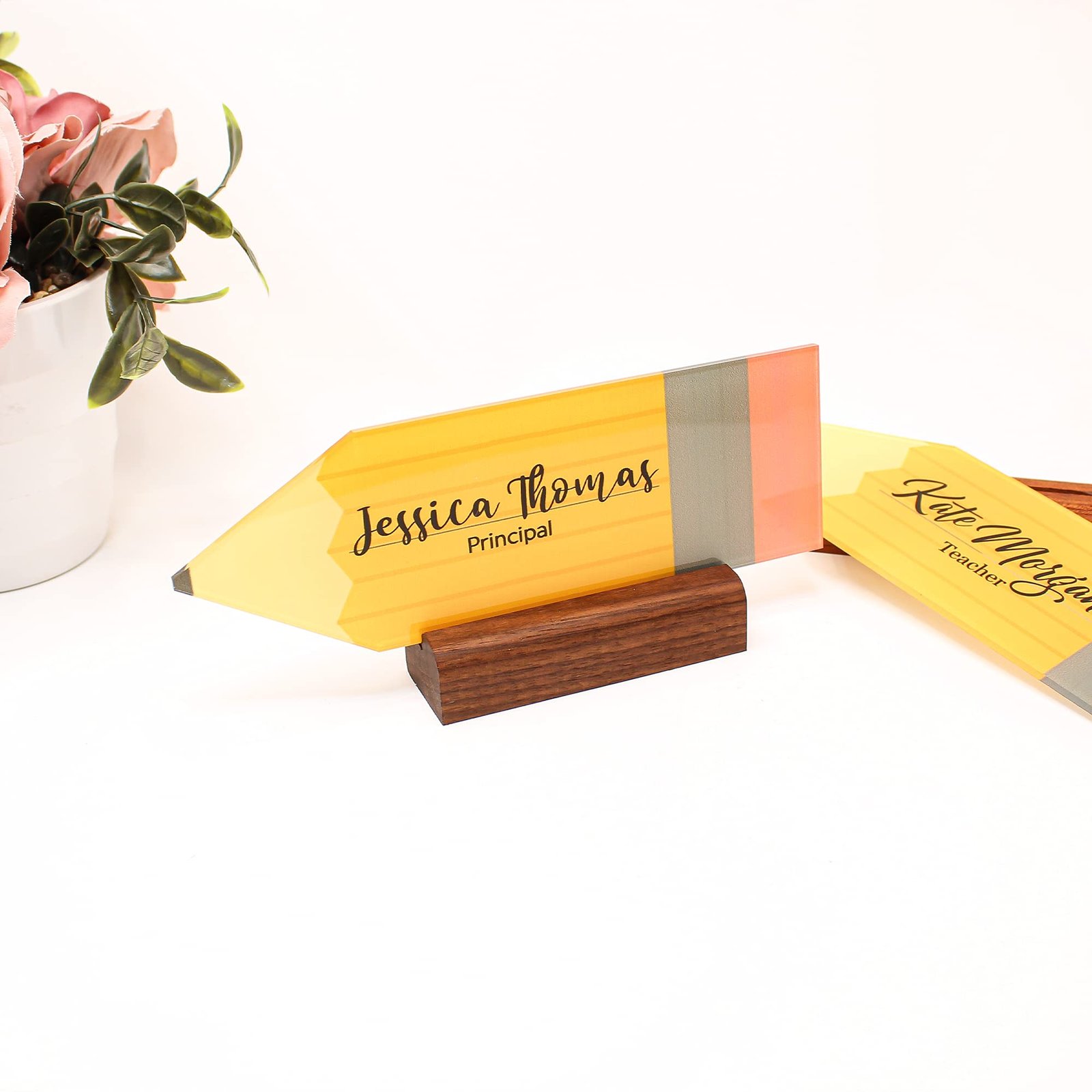 Double Sided Acrylic Desk Name Plate Holder Business Sign for Exhibitions